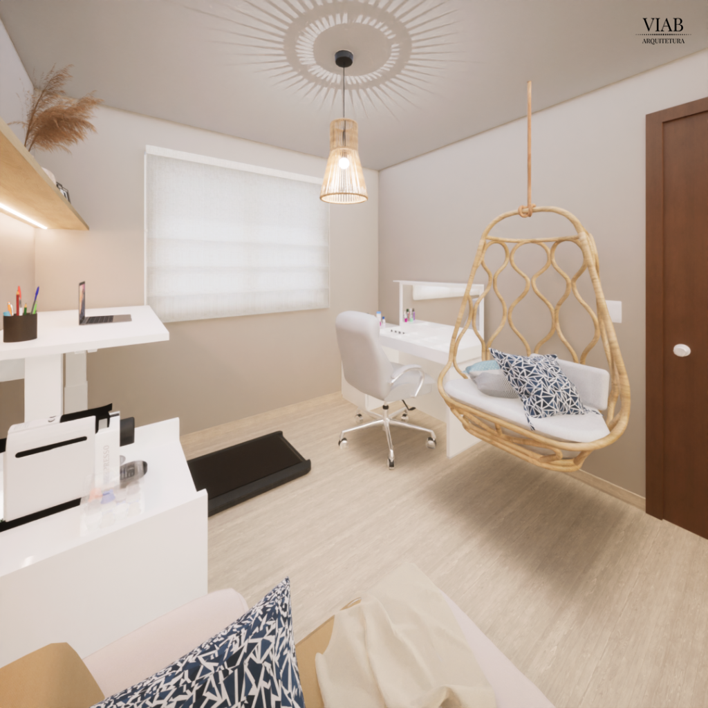 A cadeira suspensa era um sonho dela! Fazer caber no espaço foi um desafio e tanto rs mas foi a cereja do bolo que ganhou o coração dela.